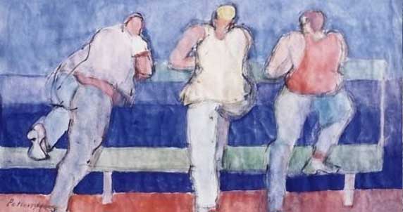Petrovszky no se aparta de la escena cotidiana, observa y nos trae figuras y paisajes del diario acontecer, figuras con semblante melancólico, cansadas o dormidas; paisajes urbanos que muestran el transcurrir de la vida misma.
